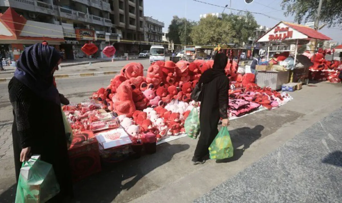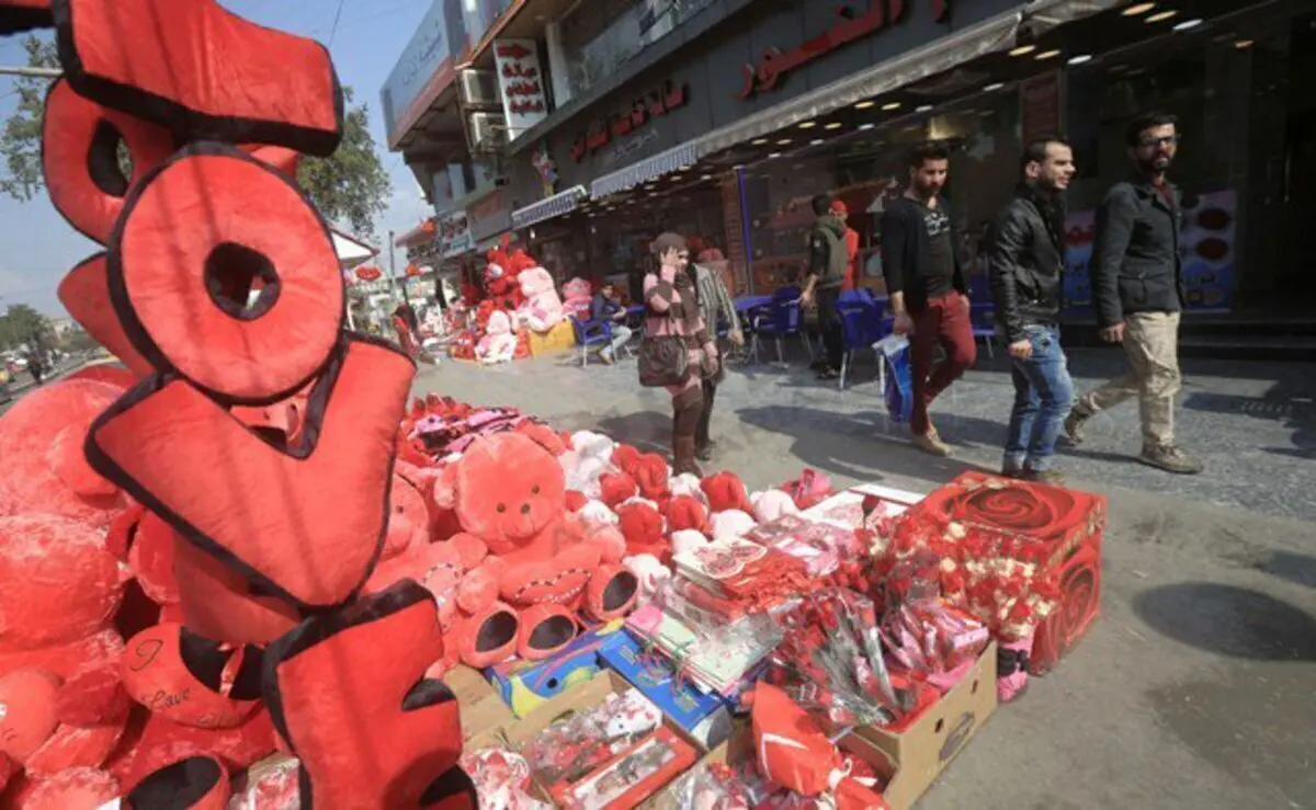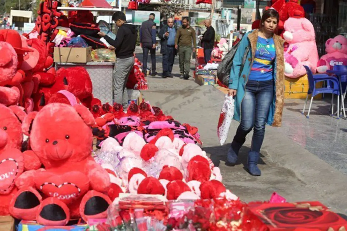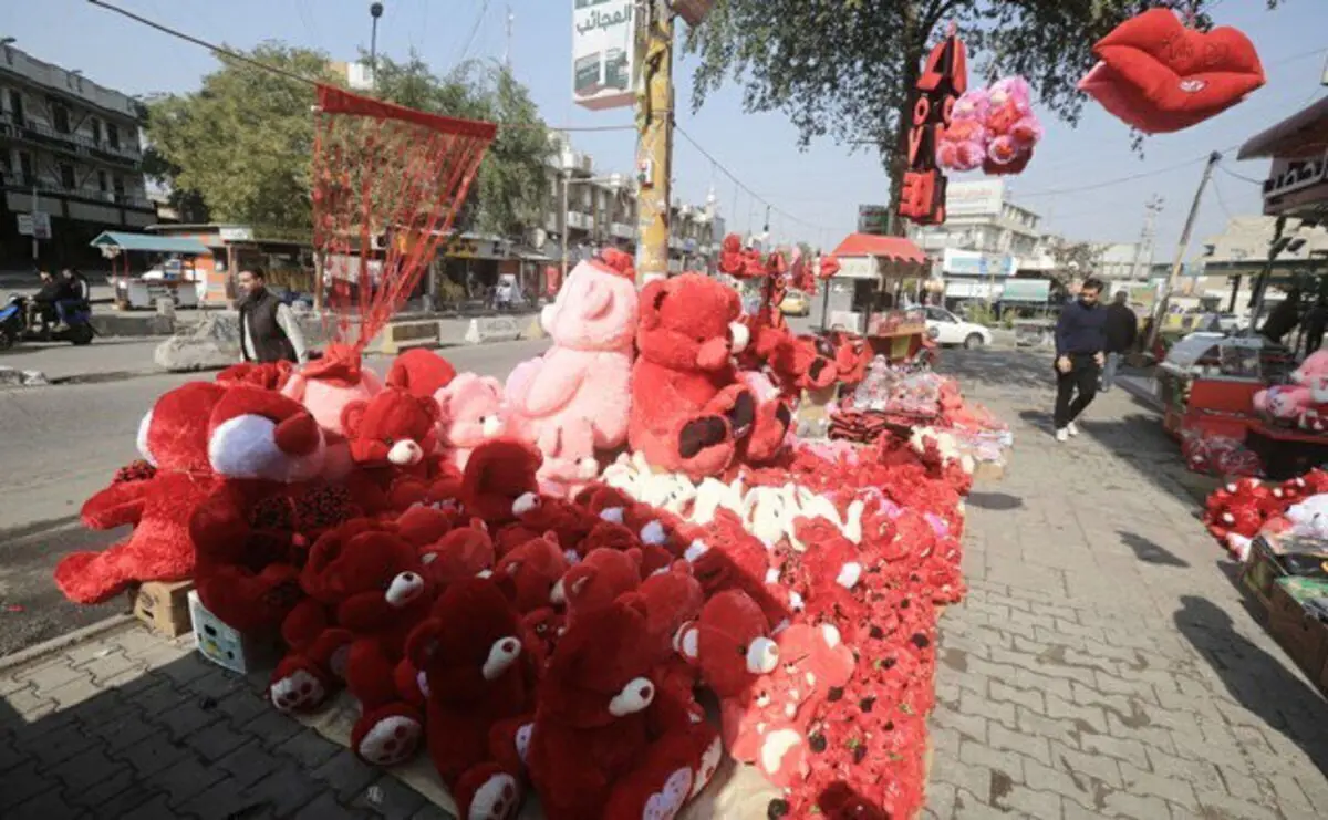 اجتاح اللون الأحمر شوارع بغداد في حمى الاحتفال بعيد الحب "الفلانتاين"، وامتلأت الشوارع منذ أيام استعدادًا للاحتفال، بالدببة الحمر وسط إقبال كثيف على شرائها من قبل الرجال والنساء ممن يودون تقديمها هدية بهذه المناسبة، التي يحتفل بها العالم يوم 14 فبراير/شباط.