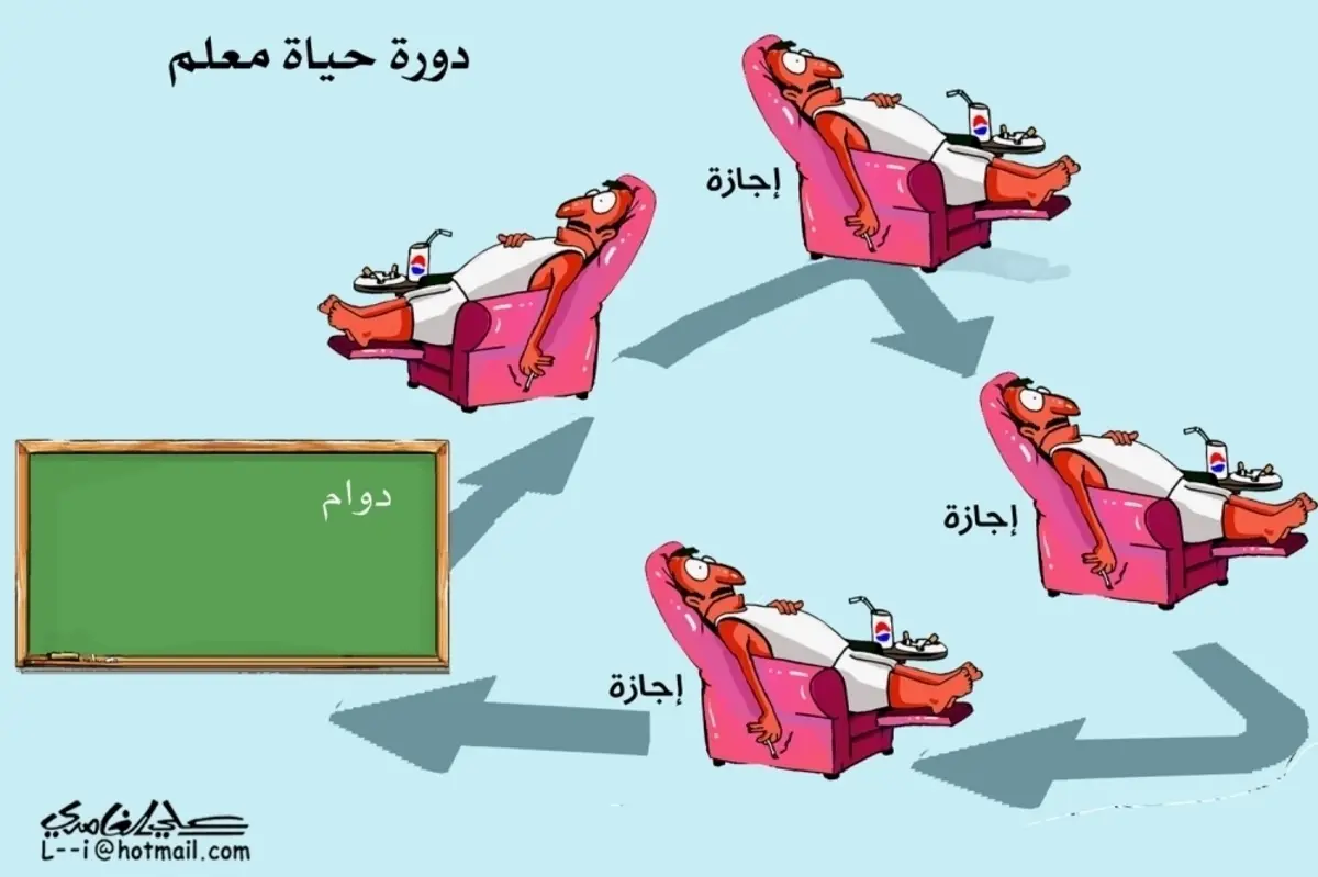 وكان الصحيفة اليومية نشرت ،في عدد أمس الاثنين، رسماً كاريكاتوريًا للفنان علي الغامدي، حمل عنوان "دورة حياة المعلم"، بينما يتحدث محتواه عن أن المعلم يقضي إجازات أكثر من أيام دوامه في المدارس.