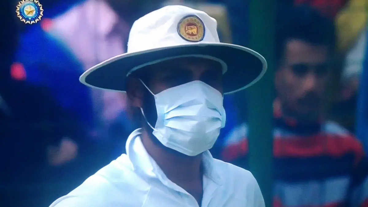 وبعد فترة توقف، خرج خمسة من الأقل من لاعبي سريلانكا للملعب وهم يرتدون أقنعة الوجه، في ظل الدخان الكثيف الذي بدا واضحًا في استاد فيروز شاه كوتلا.