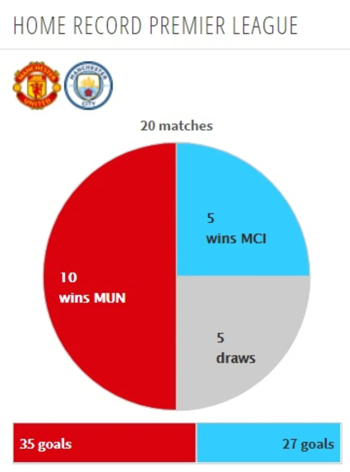 وخلال هذه المباريات العشر، سجل مانشستر سيتي 14 هدفًا، مقابل 9 أهداف لمانشستر يونايتد.