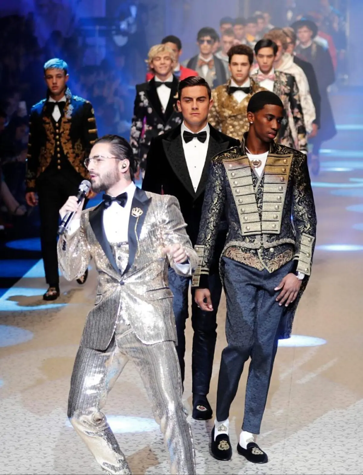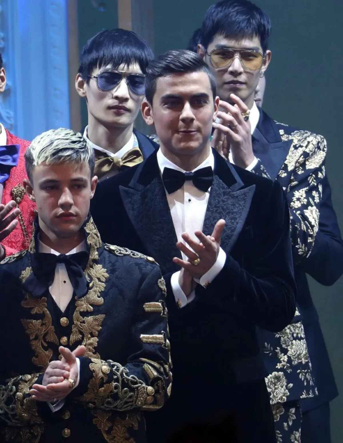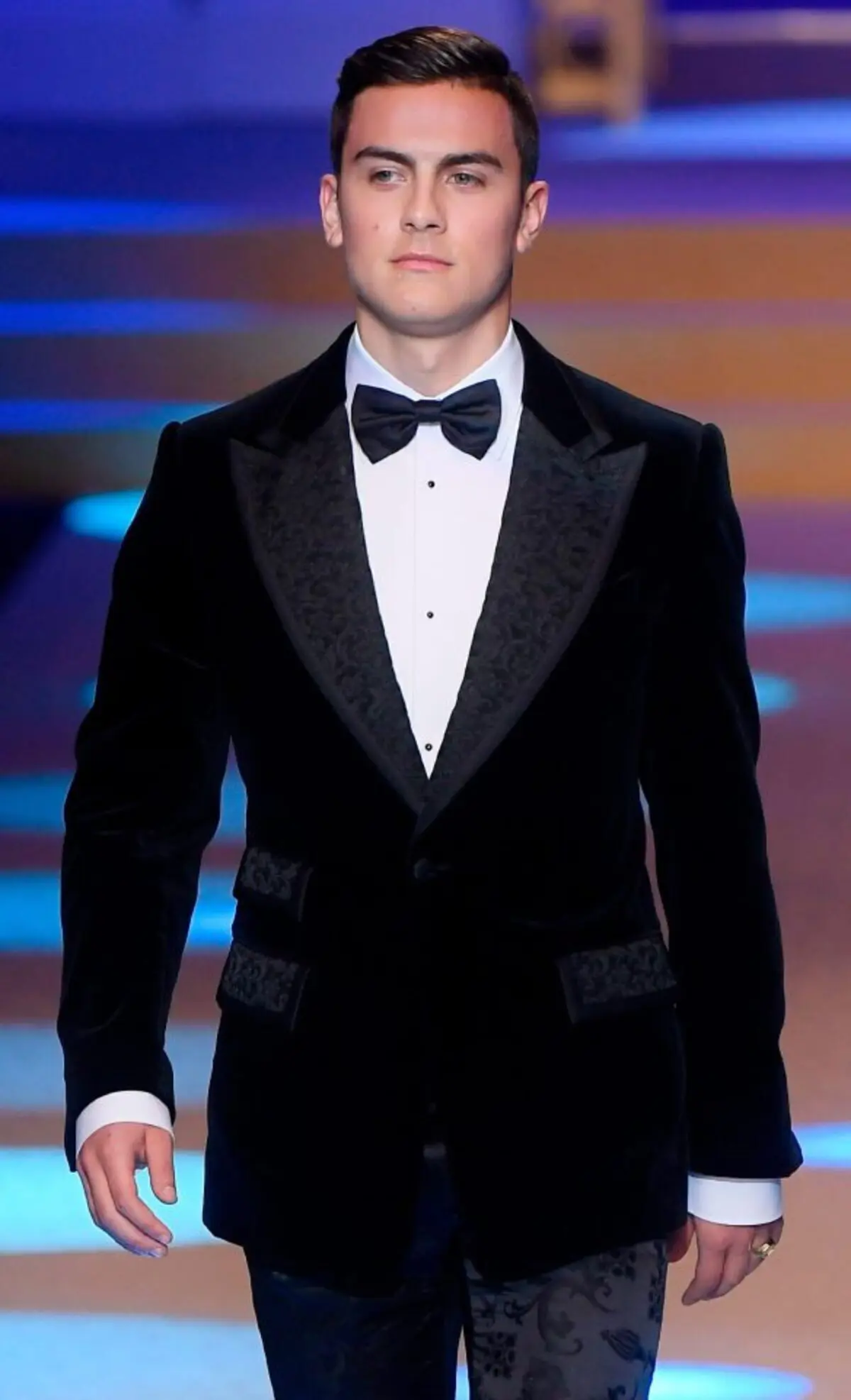 وارتدى ديبالا، الذي سجل 14 هدفًا في 14 مباراة بالدوري الإيطالي حتى الآن، بدلة سوداء كاملة تحمل علامة "دولتشي آند غابانا" الشهيرة.
