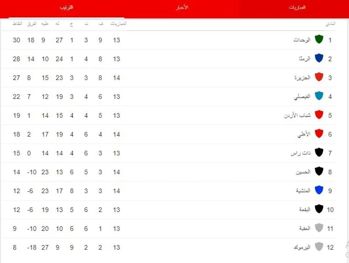 بهذا التعادل، ارتفع رصيد الفيصلي إلى 23 نقطة في المركز الرابع، في حين ارتفع رصيد الوحدات إلى 31 نقطة في الصدارة.