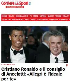 نصح المدرب الإيطالي كارلو أنشيلوتي، اللاعب البرتغالي كريستيانو رونالدو بالانتقال إلى يوفنتوس، بعد أن طلب رونالدو النصيحة من مدربه السابق.