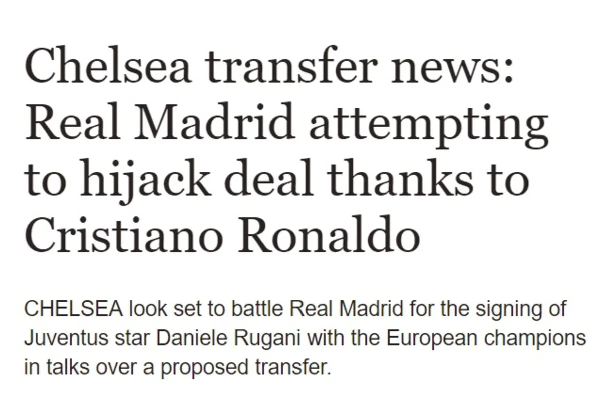 ووفقًا لصحيفة "ديلي إكسبريس"، فإن ريال مدريد يريد خطف روجاني من تشيلسي، باستغلال العلاقة الجيدة مع إدارة يوفنتوس، عقب الانتقال للنجم البرتغالي كريستيانو رونالدو من الفريق الملكي إلى السيدة العجوز.