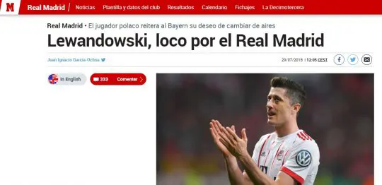 وأضافت الصحيفة أن ليفاندوفسكي، الذي سيبلغ من العمر 30 عامًا الشهر المقبل، يحلم باللعب لريال مدريد.