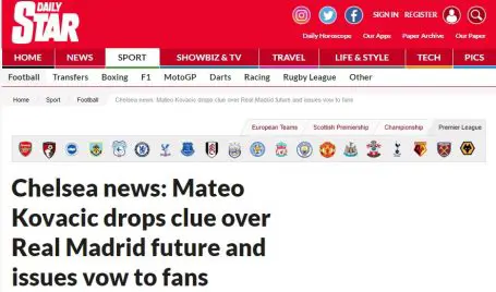 ونقلت صحيفة "ديلي ستار" الإنجليزية عن كوفاسيتش قوله إنه لا يريد العودة مجددًا إلى ريال مدريد، وإنه ينوي الاستمرار مع تشيلسي.