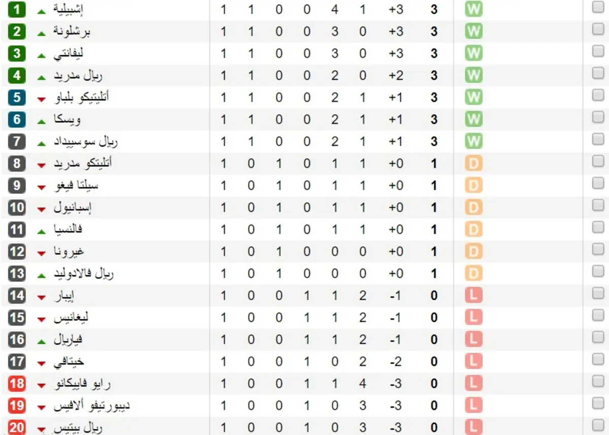وفيما يلي تريب الدوري الإسباني بعد نهاية الجولة الأولى: