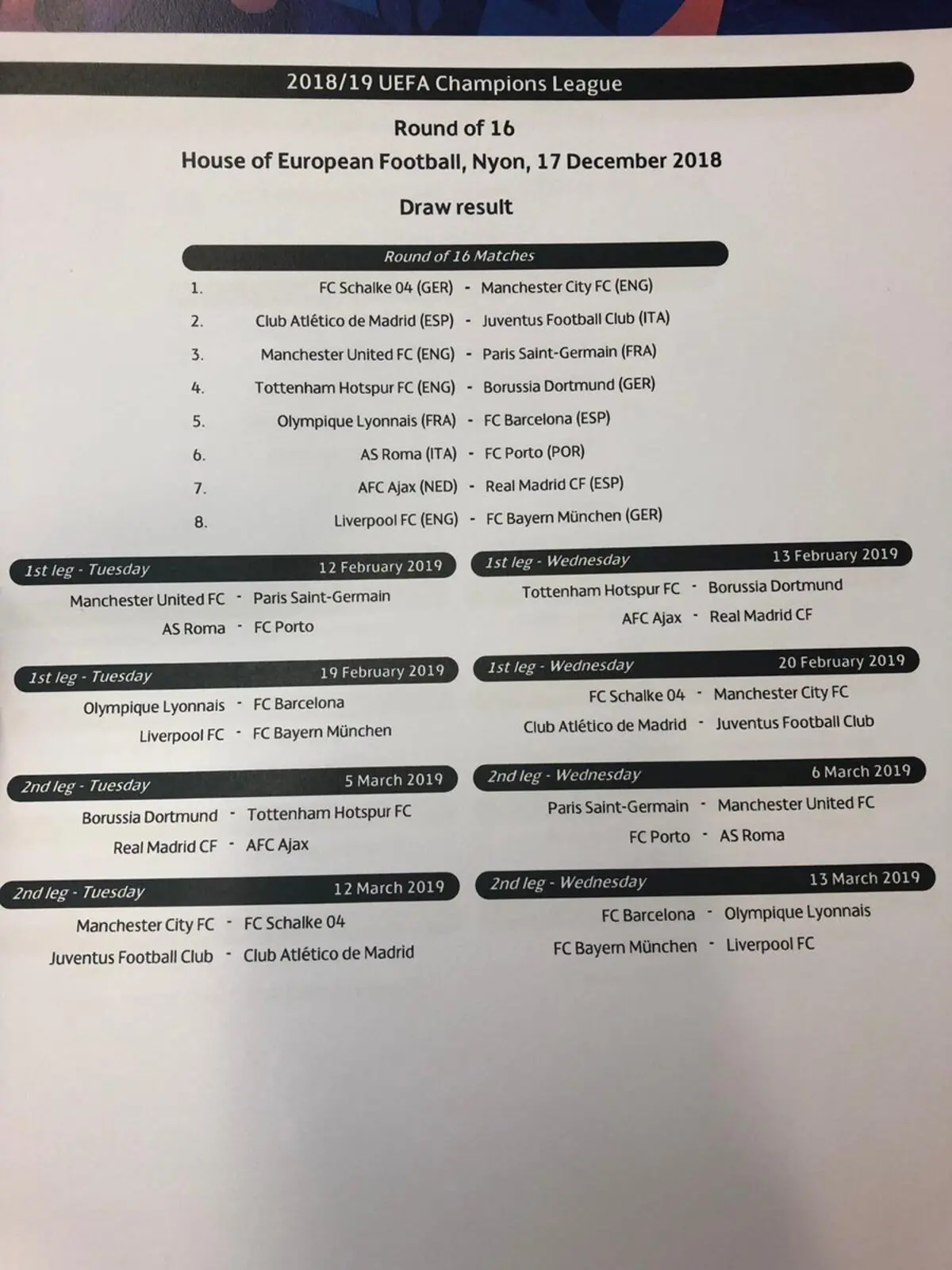 حدَّد الاتحاد الأوروبي لكرة القدم "يويفا" مواعد مباريات دور ثمن نهائي دوري أبطال أوروبا، بعد انتهاء القرعة، التي أقيمت، ظهر اليوم الاثنين، بمقر "يويفا".