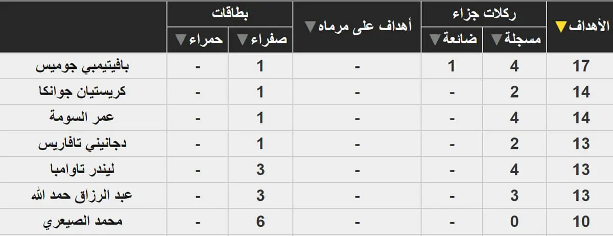 وسجل غوميز الهدف رقم 17 في الدوري السعودي الموسم الحالي، ليبتعد في صدارة الهدافين.
