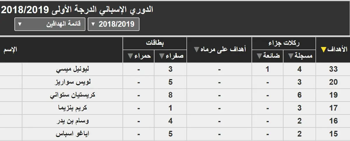 1. ليونيل ميسي، برشلونة، 33 هدفًا.