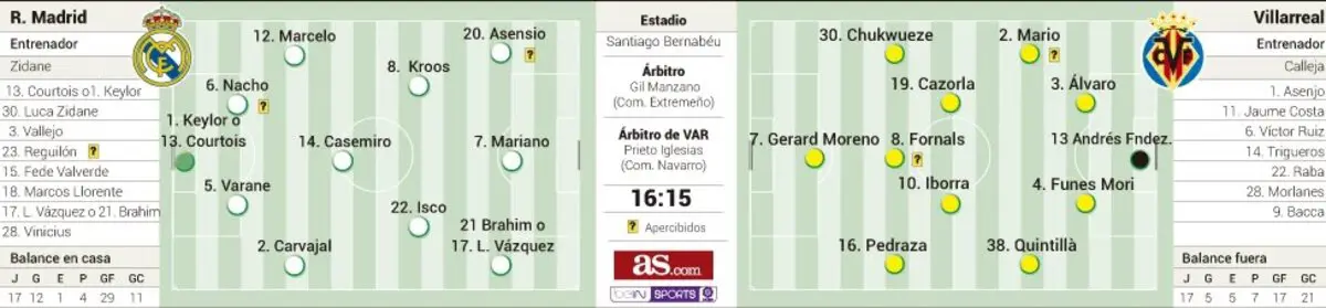 وجاءت التشكيلة التي توقعتها صحيفة "آس" كالآتي: