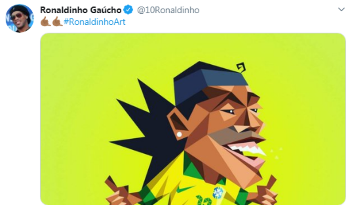 نشر البرازيلي رونالدينيو لاعب نادي برشلونة السابق صورة له بطريقة كاريكاتيرية عبر صفحته الشخصية بقميص منتخب بلاده، وعلق بالإشارة التي اشتهر بها في الملاعب عقب تسجيل كل هدف.