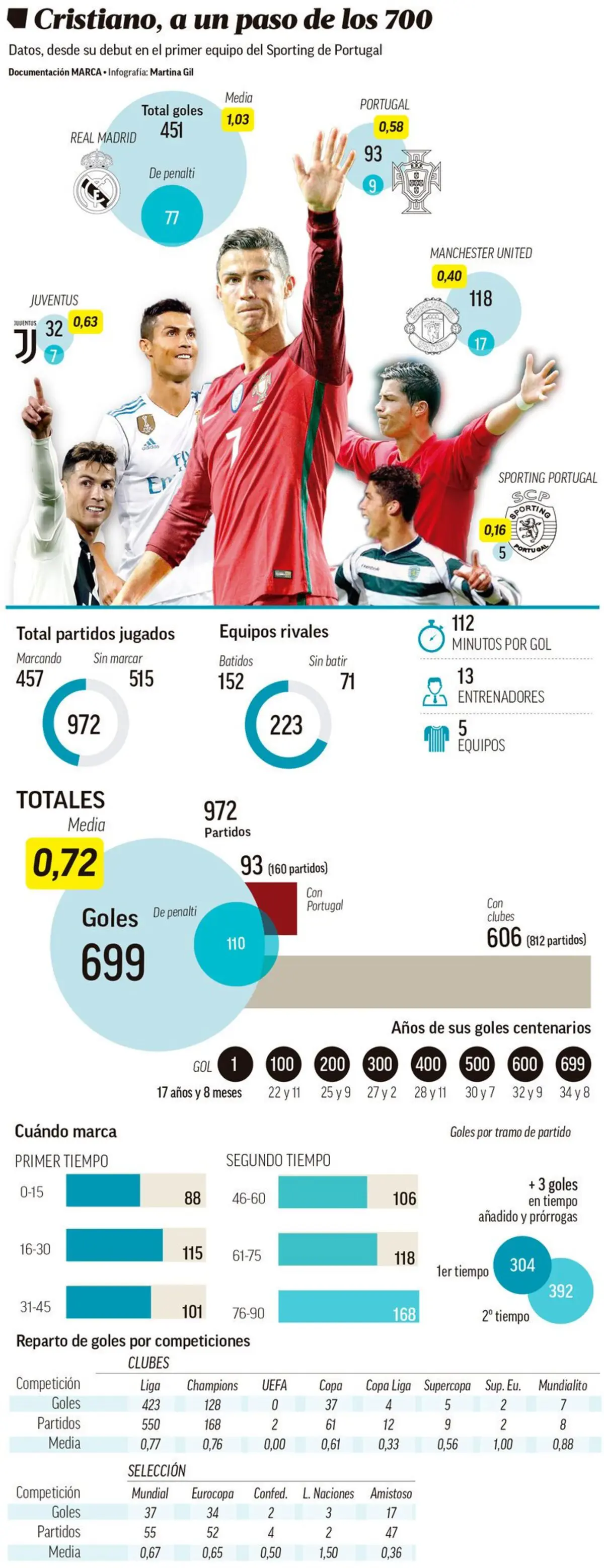 واحتفلت صحيفة "ماركا" بوصول كريستيانو رونالدو إلى 700 هدف رسمي، في حين أن هدفه في مرمى لوكسبورغ هو الهدف رقم 699 بالنسبة للبقية ويبقى على بعد هدف وحيد من دخول دائرة ضيقة من الأساطير تجاوزت 700 هدف رسمي.