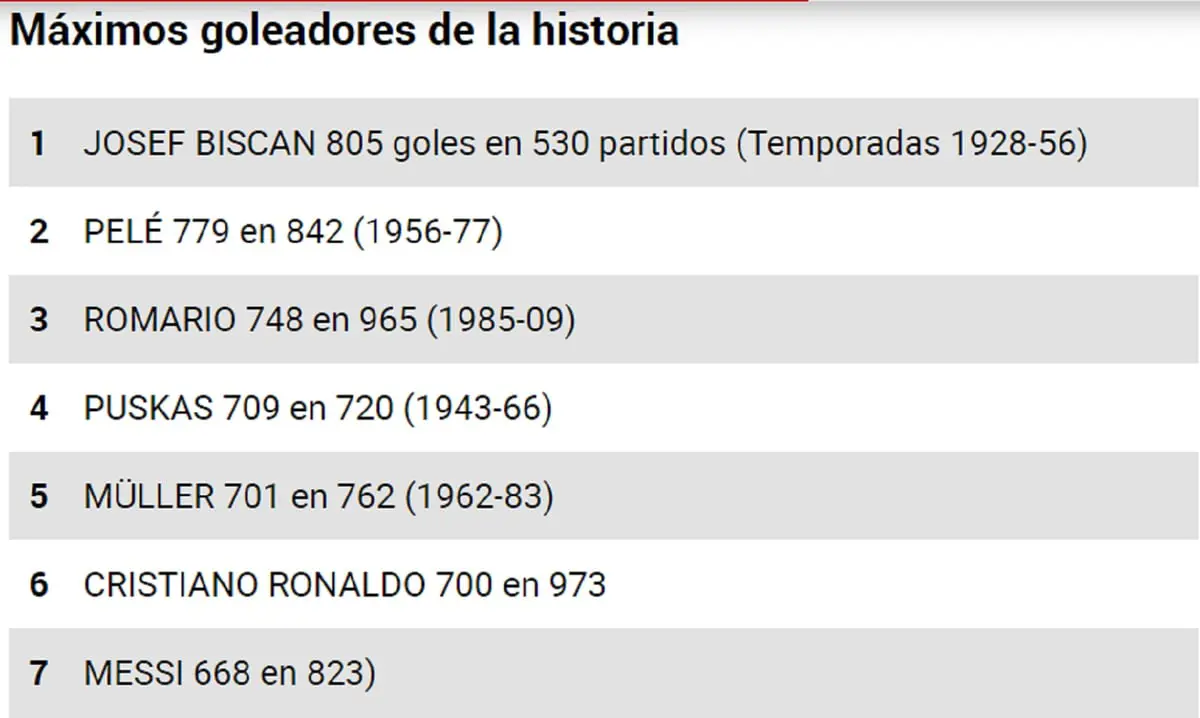وقبل النجم البرتغالي سجل 5 أساطير فقط 700 هدف رسمي مع الأندية ومنتخبات بلدانهم وهم: