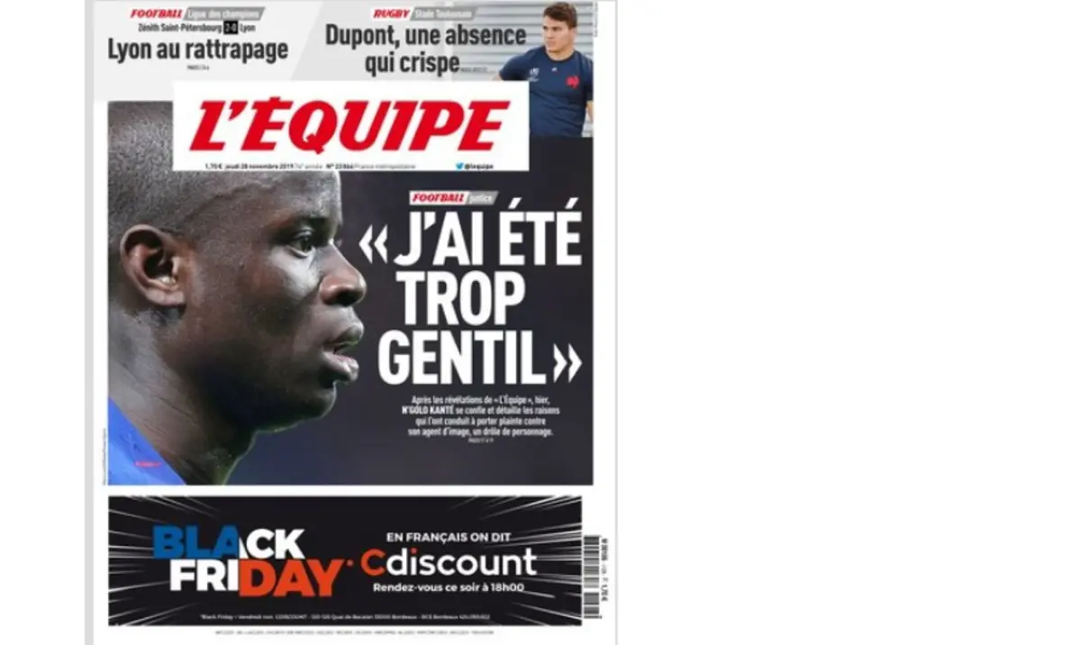 ركزت الصحيفة على حوارها مع النجم الفرنسي نغولو كانتي لاعب تشيلسي والمنتخب الفرنسي والذي قال :" كنت لطيفًا للغاية ".