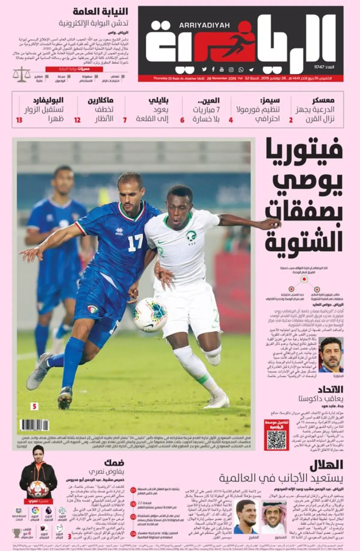 ركزت الصحيفة على خسارة المنتخب السعودي في بطولة كأس الخليج أمام منتخب الكويت 3-1 في افتتاح لقاءاته في المجموعة الثانية.
