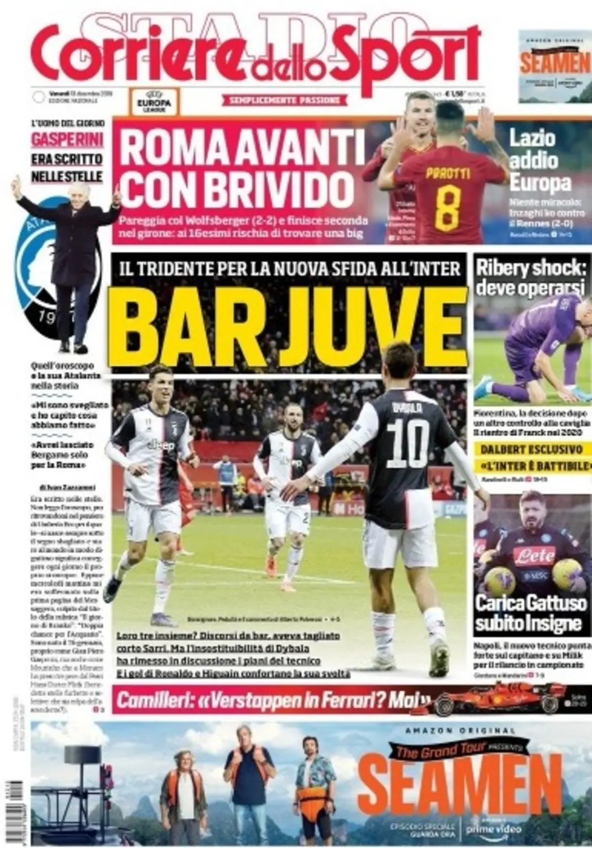 ركزت الصحيفة على مشاركة الفرق الإيطالية في الدوري الأوروبي وكتبت "روما إلى الأمام بقوة" و"لاتسيو يقول وداعًا لأوروبا".