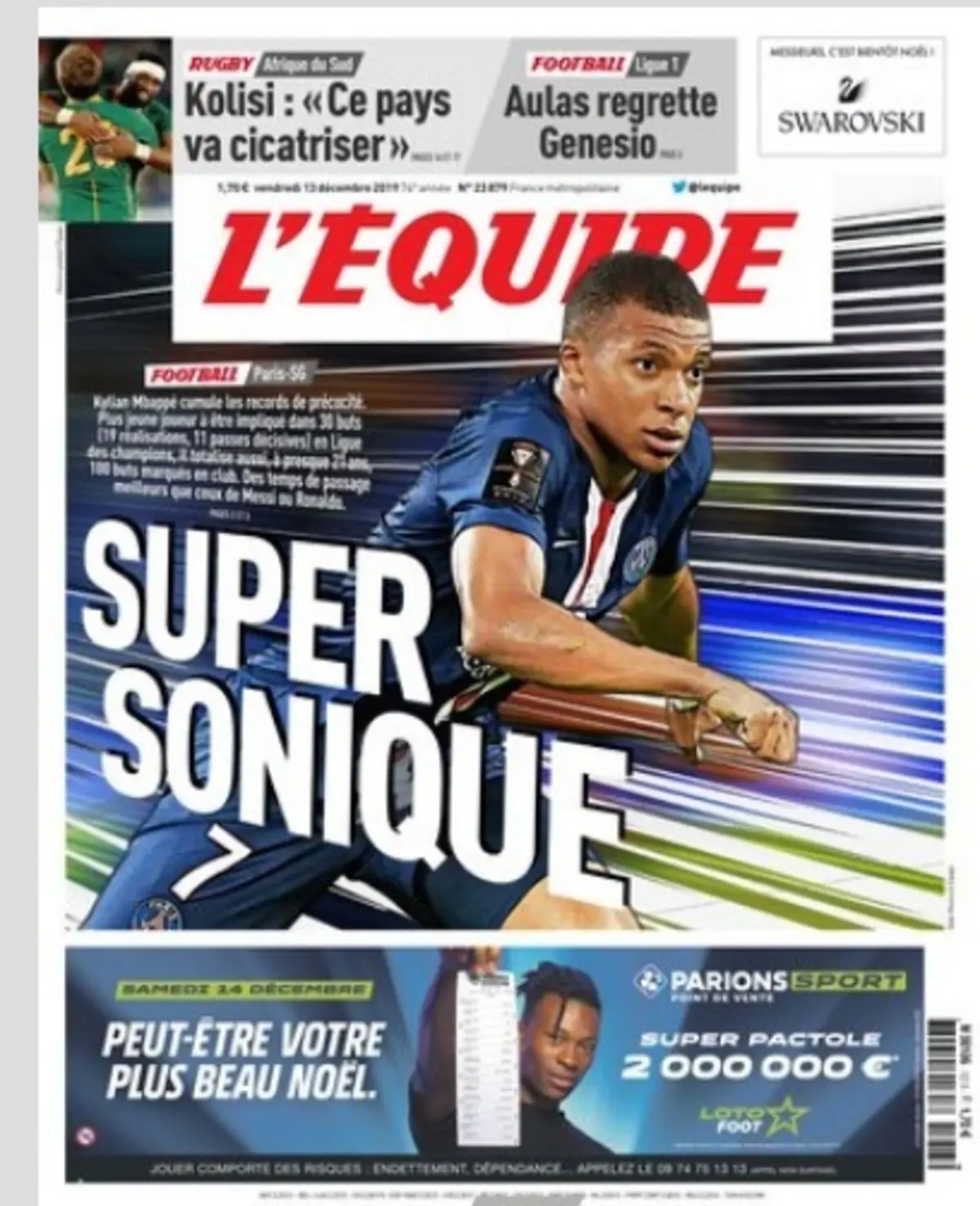 ركزت الصحيفة على النجم الفرنسي كيليان مبابي مهاجم باريس سان جيرمان، الذي وصل لهدفه رقم 100 مع الأندية ويحقق أرقامًا لم يحققها نجوم كبار حين كانوا في عمر 20 عامًا.