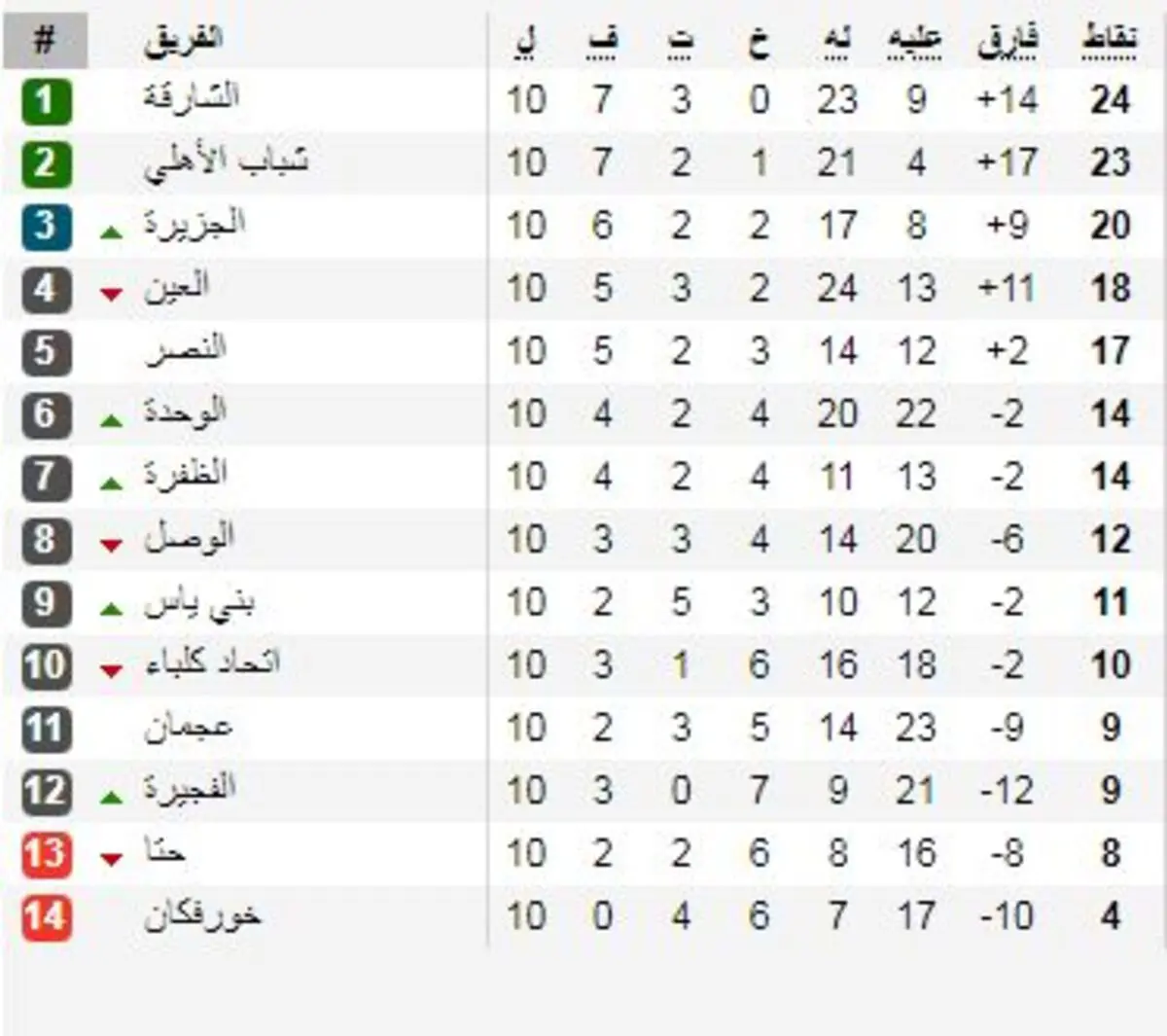 وفيما يلي جدول ترتيب الدوري الإماراتي كاملًا: