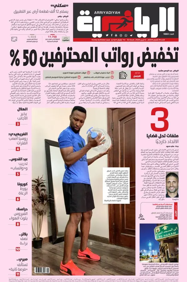 ركزت الصحيفة على قضية تخفيض الرواتب في الأندية السعودية، وكتبت: "تخفيض رواتب المحترفين 50%".