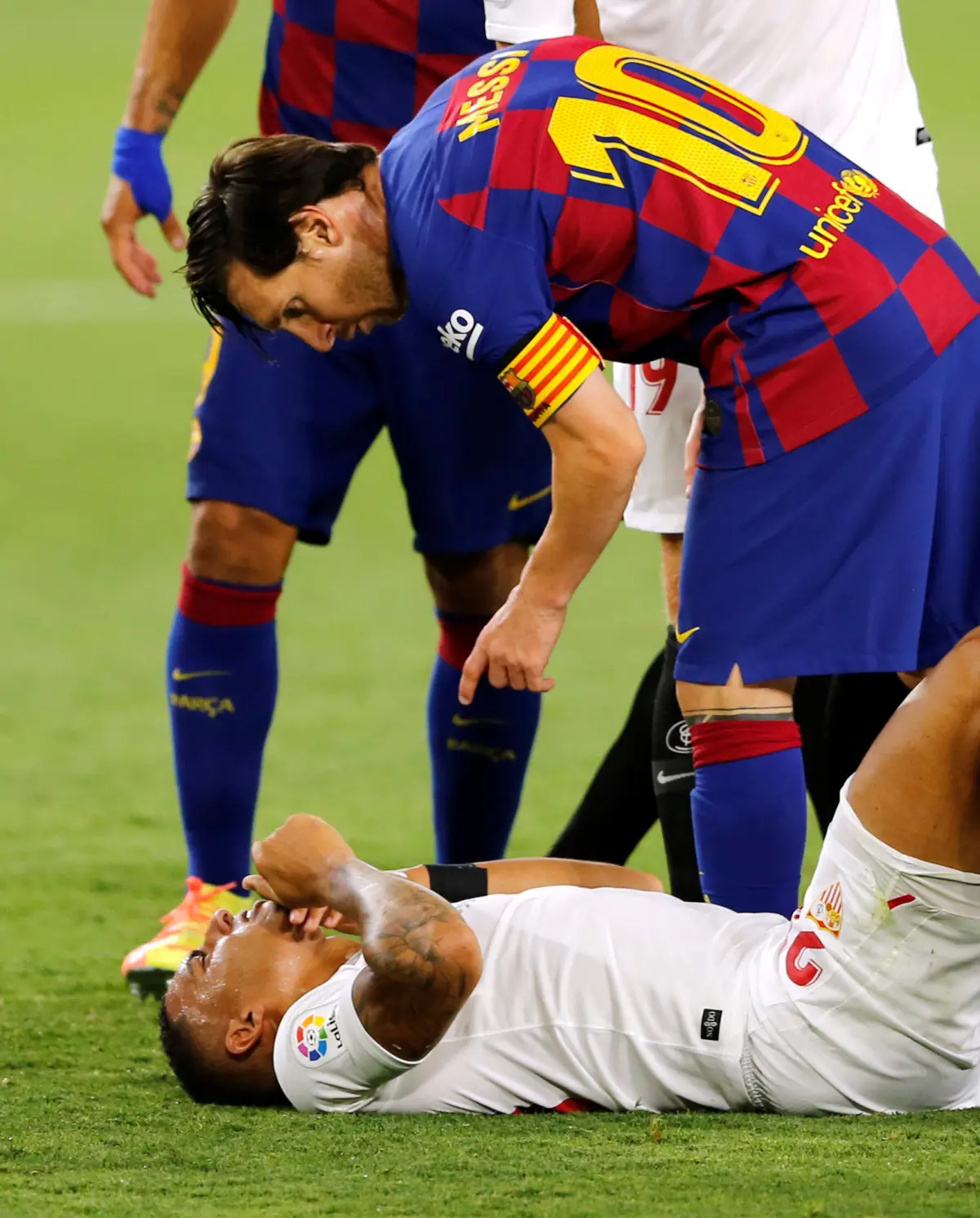 وجّه النجم الأرجنتيني ليونيل ميسي مهاجم وقائد برشلونة ضربة لأحد لاعبي إشبيلية، في المباراة التي جمعت الفريقين، في قمة الجولة الـ30 من الدوري الإسباني.