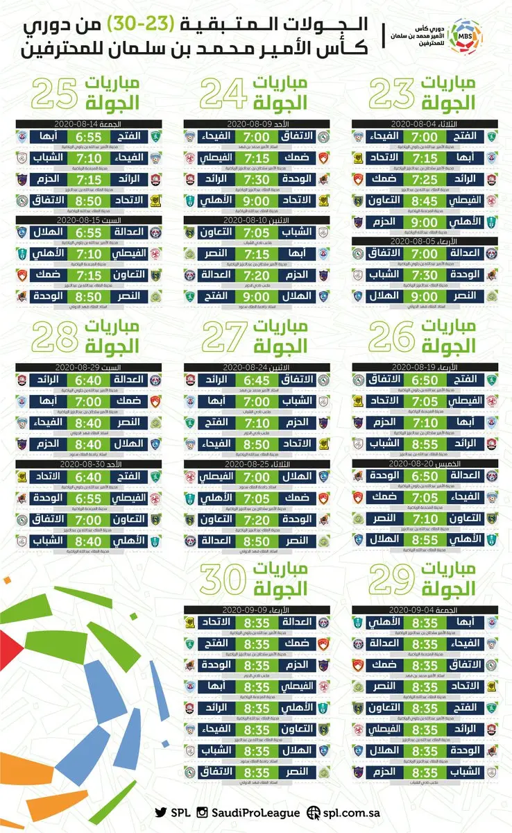 وفيما يلي جدول باقي مباريات الدوري السعودي كاملًا: