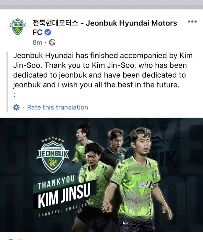 كما قام النادي الكوري بتوديع كيم جين سو عبر حسابه الرسمي، كما أعلن اللاعب بدوره عبر حسابه على "إنستغرام" انتقاله إلى النصر.