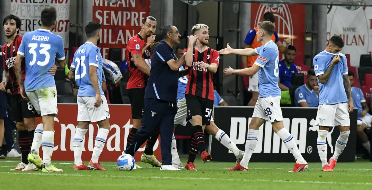 وتلقى مدرب ساري بطاقة حمراء بسبب مشادة كبيرة حدثت مع ساليميكرس لاعب ميلان، ليتدخل الحكم بعدها ويطرد مدرب لاتسيو، في المباراة التي انتهت بفوز الروسونيري بهدفين نظيفين.