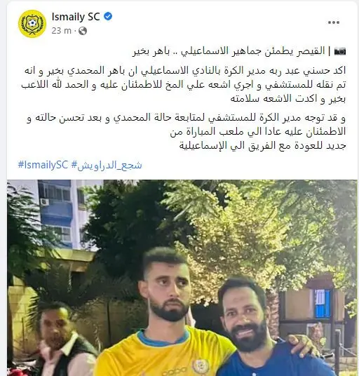 كشف حسني عبد ربه مدير الكرة في النادي الإسماعيلي تفاصيل الحالة الصحية لقائد الفريق باهر المحمدي، الذي سقط على الأرض بشكل مفزع خلال مباراة فريقه أمام المحلة في الدوري المصري.