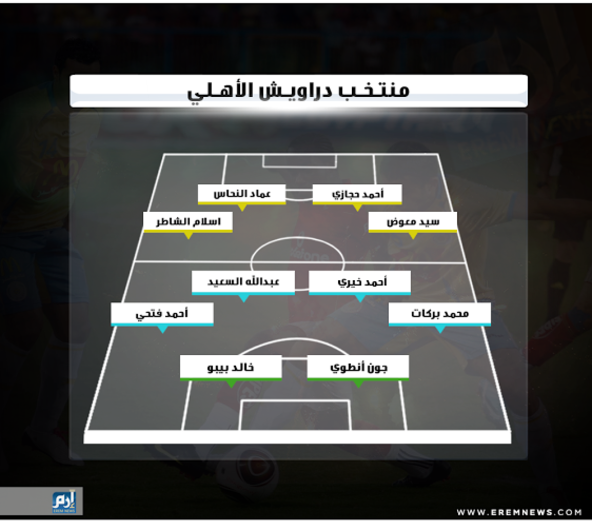 وترصد شبكة إرم الإخبارية، في الإنفوجراف التالي، تشكيلًا لمنتخب لاعبي الأهلي، الذي ضمهم وكانوا نجوماً سابقين في صفوف الإسماعيلي، على مدار السنوات الماضية: