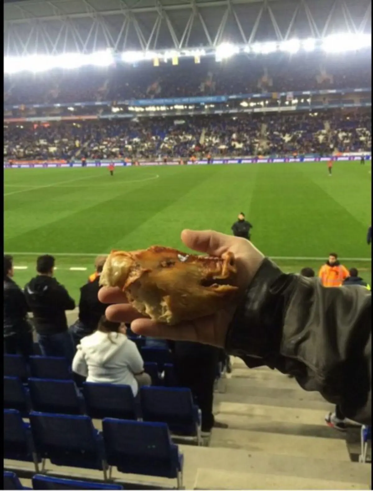 ونشر الصحفي مارتا كاريراس من إذاعة كاتالونيا صورة لرأس خنزير صغير كانت الجماهير هيأته لرميه على المدافع الإسباني في حال دخوله الملعب كبديل خلال اللقاء.