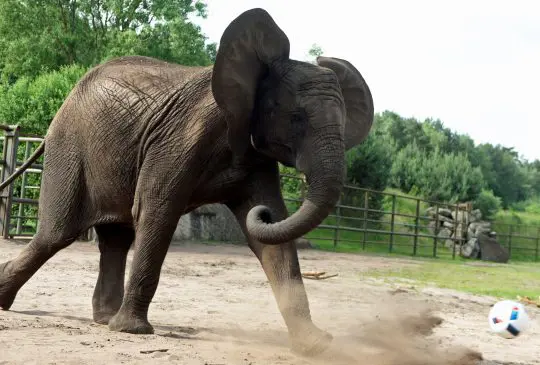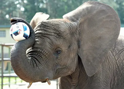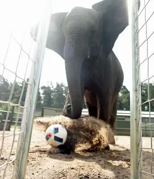 واستعرضت الفيل الألمانية مهاراتها بالكرة بحديقة سفاري بارك بإحدى مقاطعات ألمانيا.
