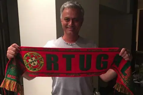 احتفل جوزيه مورينيو المدير الفني لمانشسر يونايتد بتتويج منتخب بلاده بلقب يورو 2016 بعد الانتصار على فرنسا الدولة المضيفة بهدف نظيف في المباراة النهائية في باريس أمس الأحد.