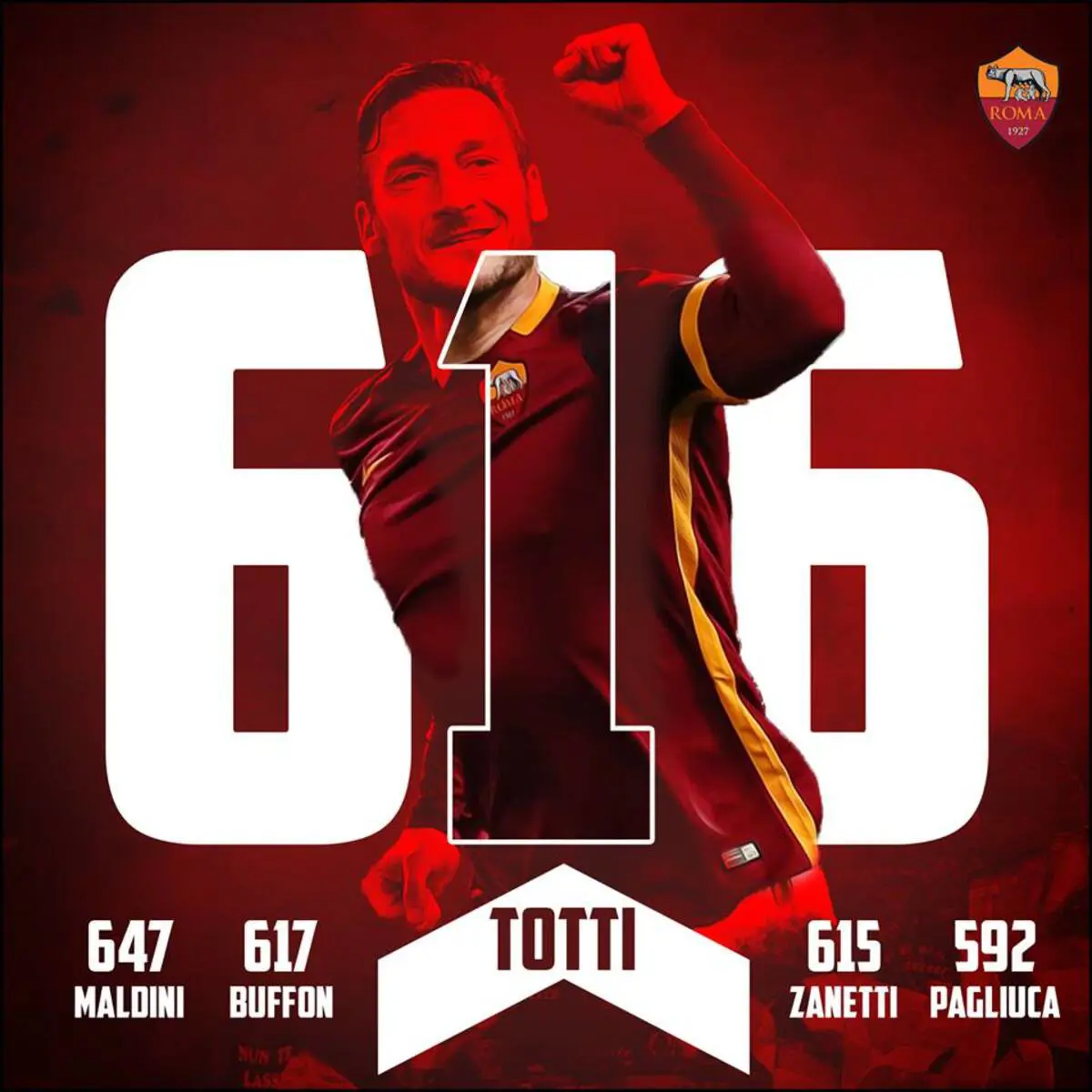 وسيكون يوم 28 أيار / مايو الحالي تاريخيا لكونه سيشهد نهاية مسيرة النجم الإيطالي بعد مسيرة استمرت حوالي 25 سنة رفقة روما وسيكون لقاء الوداع بملعب الأولمبيكو أمام جنوة برسم الجولة 38 من الدوري الإيطالي الدرجة الأولى.
