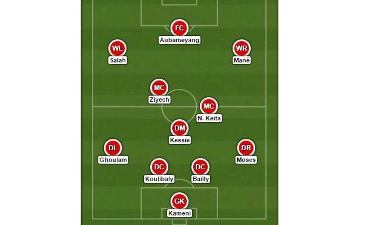الدفاع: الإيفواري إيرك بايلي من مانشستر يونايتد، السنغالي كاليدو كوليبالي من نابولي، والجزائري فوزي غلام من نابولي، والنيجيري فيكتور موسيس من تشيلسي.