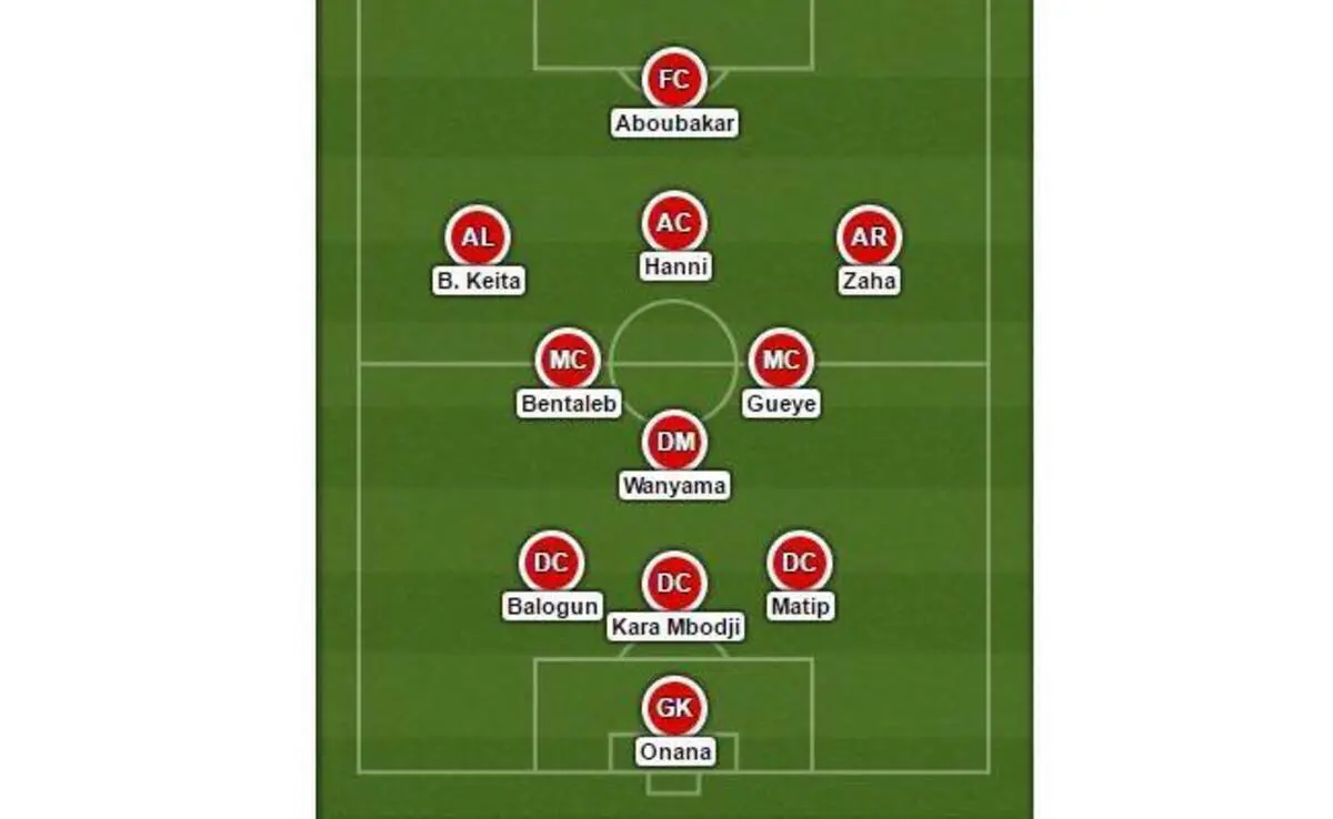 حراسة المرمى: الكاميروني إدريس كاميني، مالاغا الإسباني.