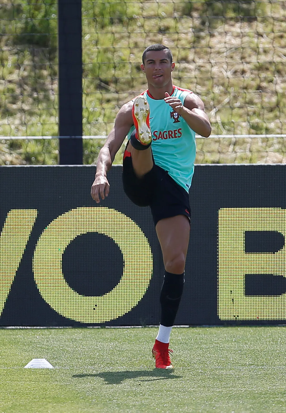 وجذب النجم البرتغالي جميع الأنظار إليه اليوم خلال المران الأول لمنتخب بلاده.