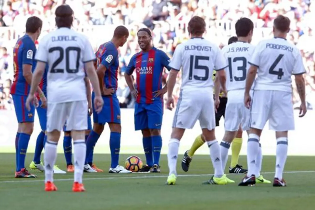 بعد 9 سنوات على رحيله من صفوف فريق برشلونة الإسباني لكرة القدم، سطع نجم كرة القدم البرازيلي الشهير رونالدينيو ومنح جماهير فريقه القديم عرضًا كرويًا ممتعًا مع مشاركته في المباراة الخيرية بين "أساطير برشلونة" و"قدامى" مانشستر يونايتد الإنجليزي.