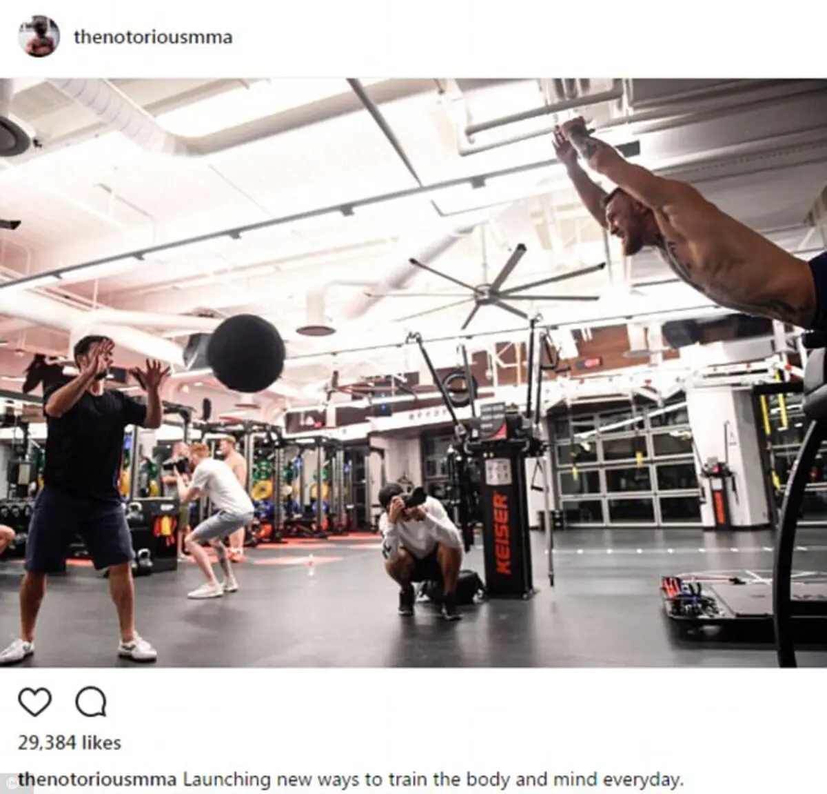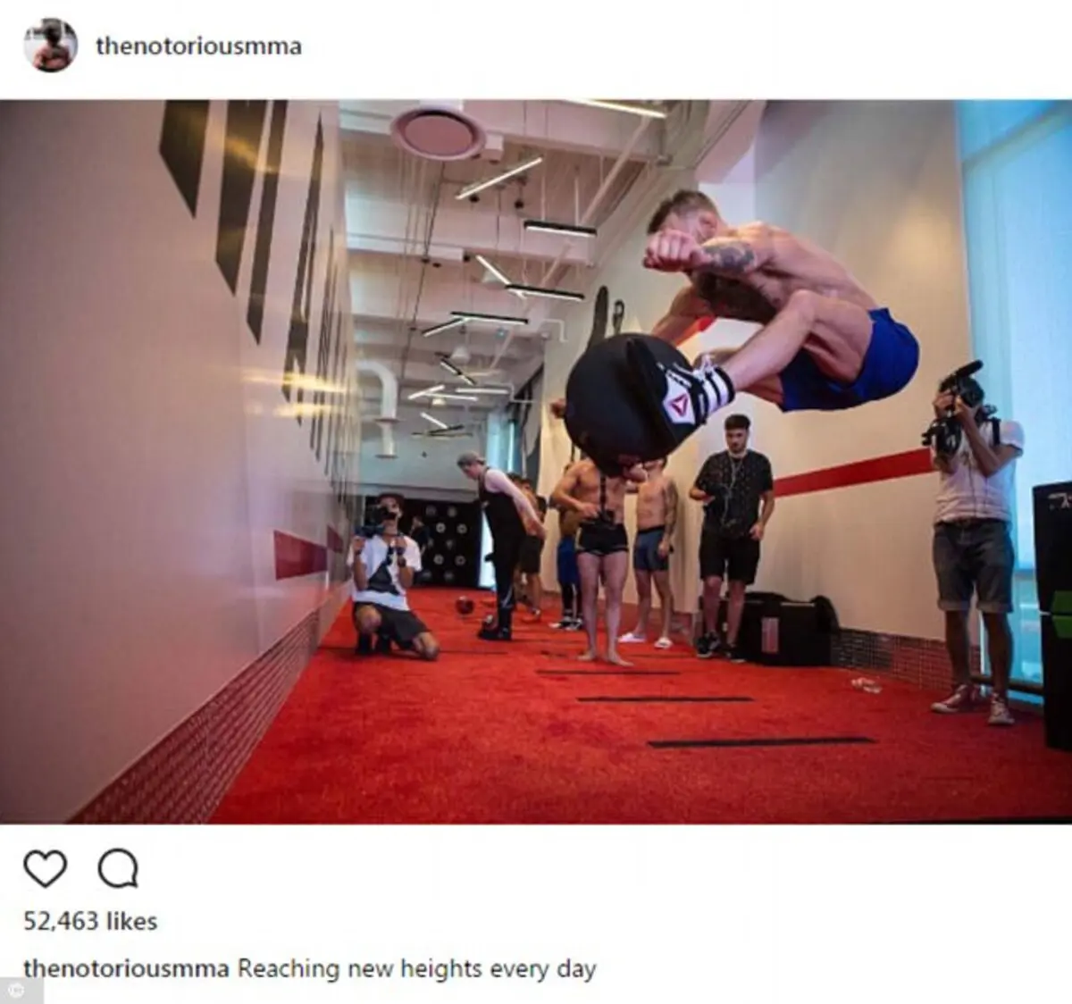 وكتب مكغريغور على إنستغرام، قائلا في تعليقه على صورته في التدريبات: "الوصول لآفاق جديدة كل يوم".