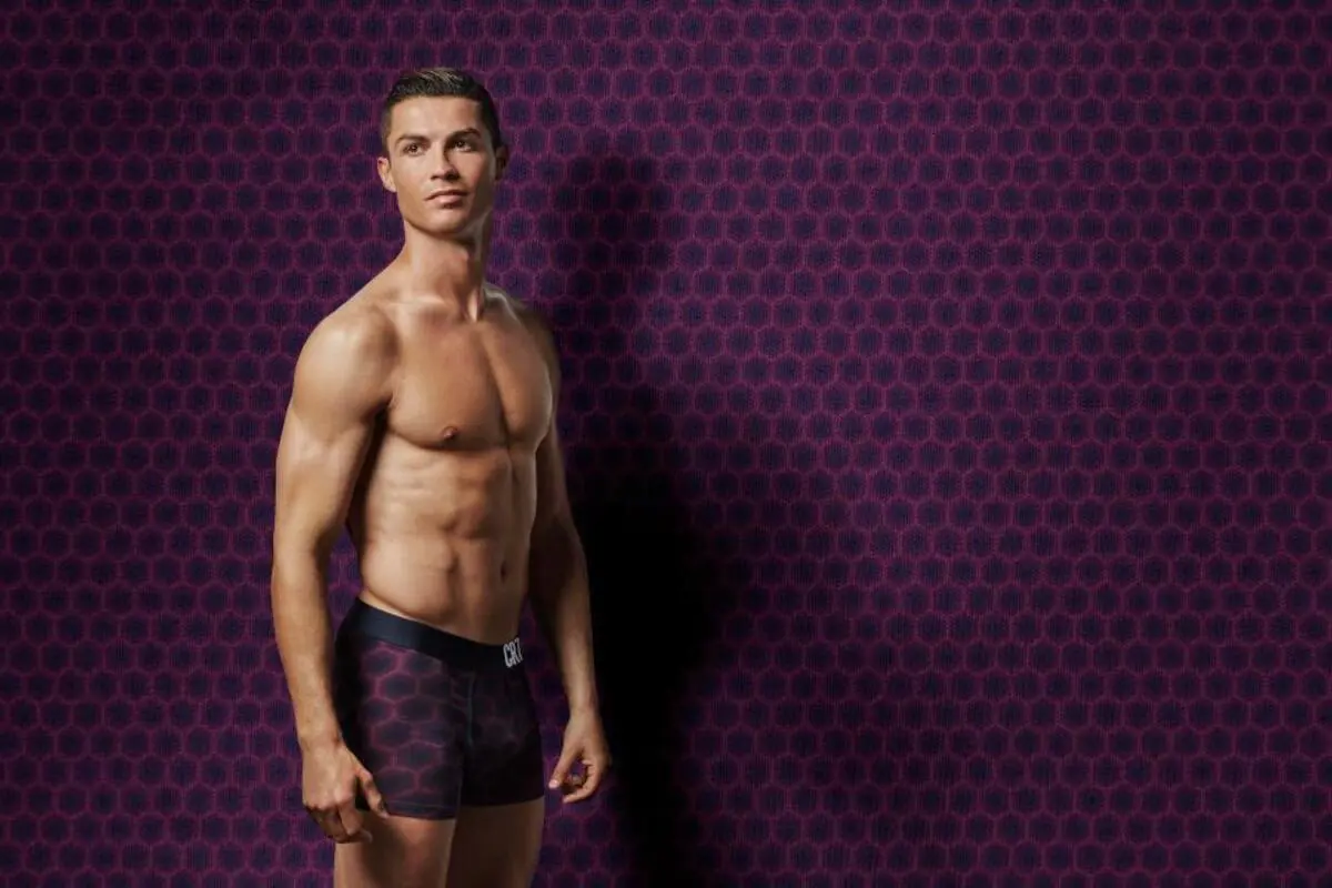 وارتدى رونالدو البالغ عمره 32 عامًا مجموعة من السراويل الداخلية المزركشة والملونة، وأظهر عضلات بطنه وجسمه الممشوق أمام الكاميرات ليطلق مجموعته "FW17".