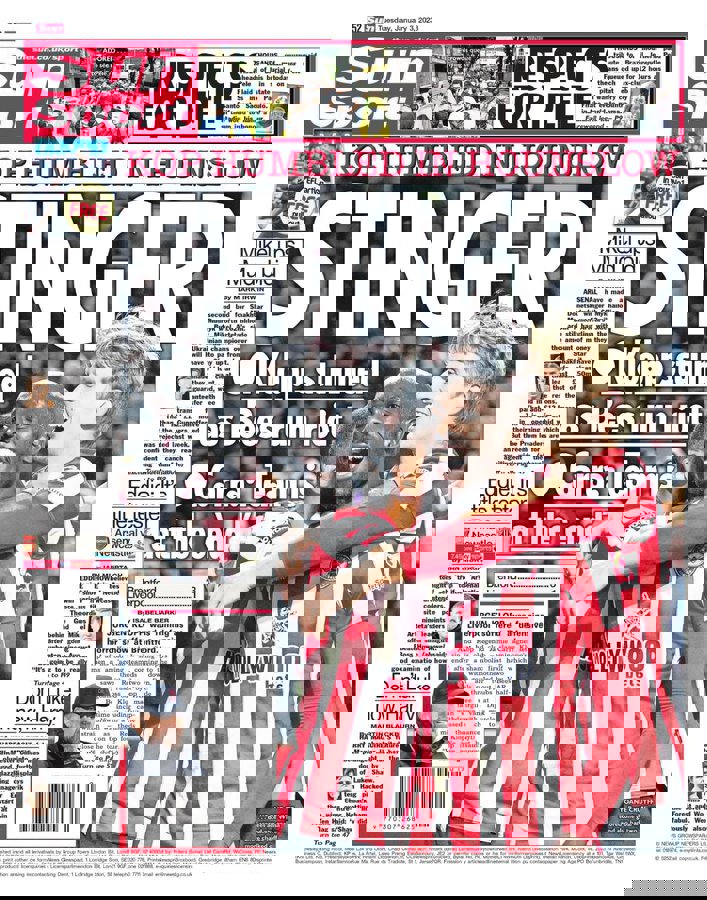 ركزت الصحيفة على هزيمة ليفربول 3-1 أمام برينتفورد في الدوري الإنجليزي الممتاز وكتبت "كلوب يتعرض للإذلال في غريفن بارك ".