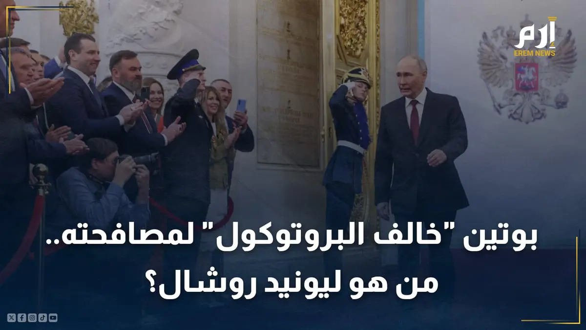 يفعلها هذه المرة ويخالف بروتوكول مراسم حفل تنصيبه لولاية رئاسية ثالثة متعمّدأً، ليصافح رجلاً كان واقفاً بين الحضور على يمين مسار بوتين.. فمن هو هذا الرجل؟